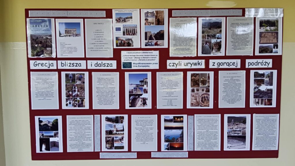 Przypomina o tym ekspozycja w budynku B przygotowana w związku z mobilnością nauczyciela języka polskiego na kurs „Cultural Heritage Education: Ancient Greece as a Case Study”