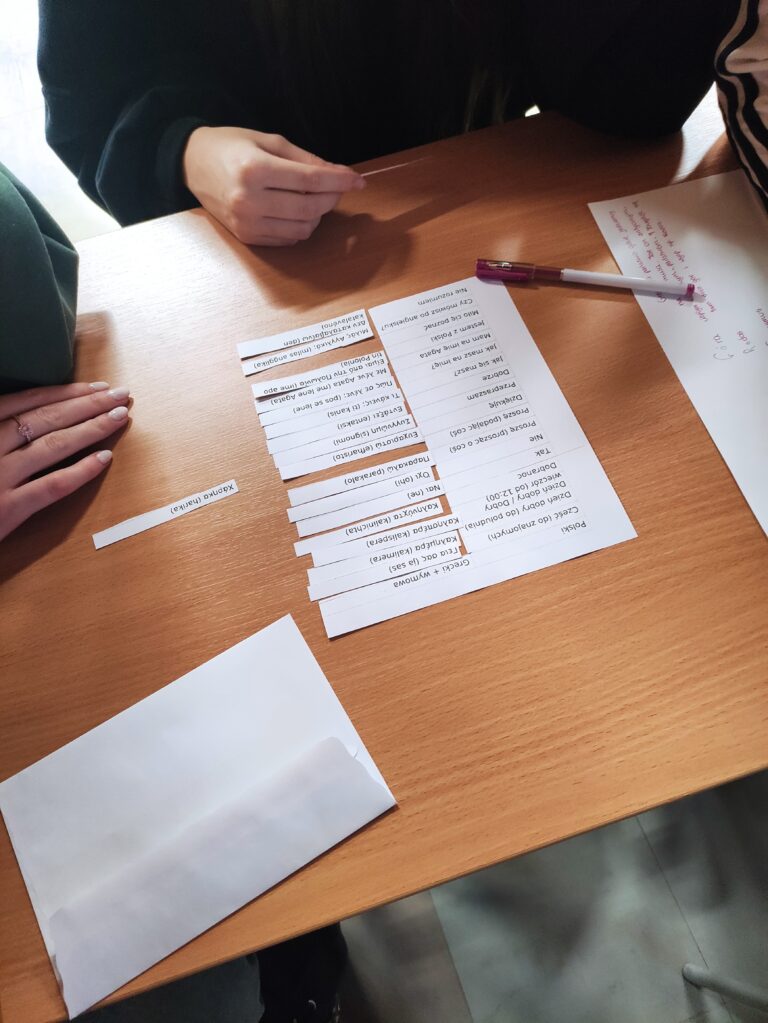 W drugiej części uczniowie mieli okazję poznać najbardziej potrzebne w życiu codziennym wyrażenia i zwroty w języku greckim. Zapamiętanie ich  okazało się nie lada wyzwaniem, ponieważ język grecki zupełnie nie przypomina języka polskiego, a dodatkowo sprawę komplikuje inny alfabet.