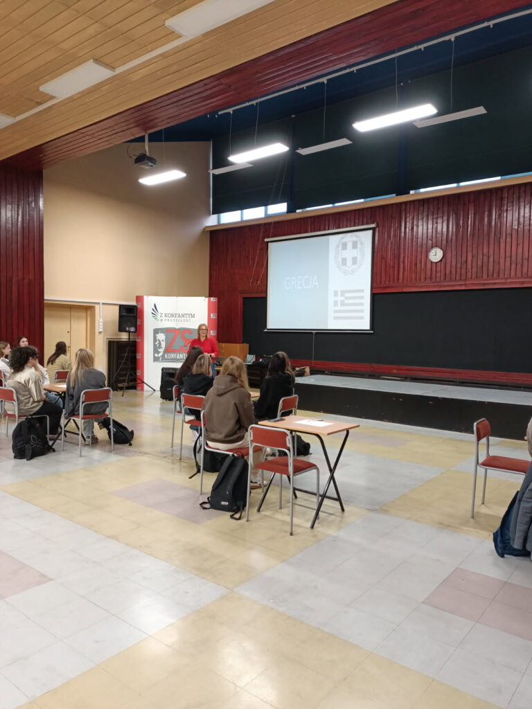 12 grudnia br. w auli szkoły odbyło się spotkanie integracyjne uczestników wyjazdu do Grecji w ramach programu Erasmus+. Celem spotkania było, nie tylko wzajemne poznanie się uczestników projektu – uczniów naszego liceum, ale także poznanie kraju, do którego wyjadą w marcu 2026 r .