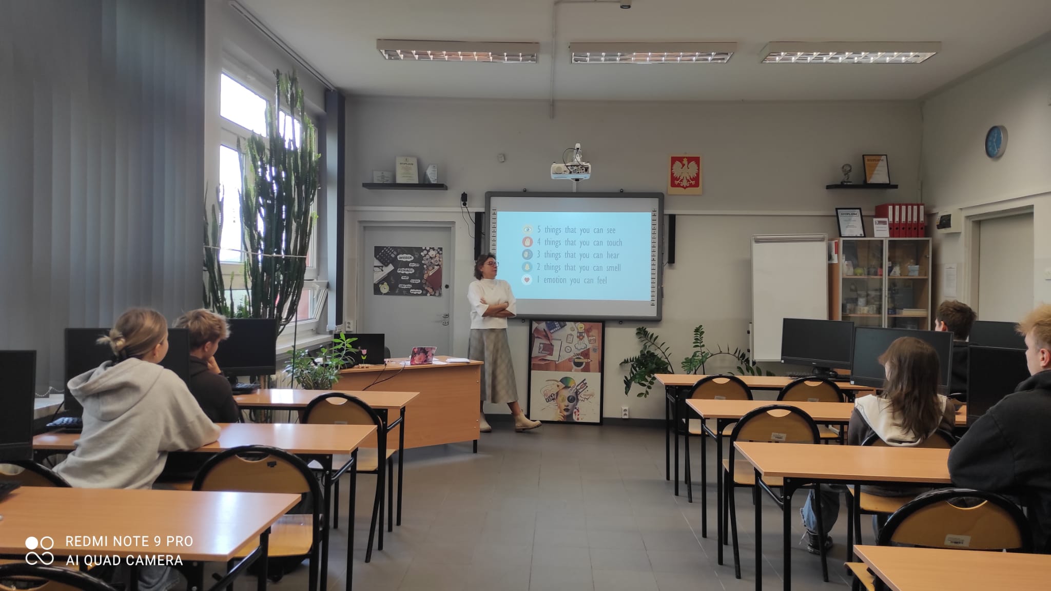 Podczas zajęć młodzież poznała również prostą technikę „5–4–3–2–1”, która pomaga się wyciszyć i wrócić do „tu i teraz”. Uczniowie mieli za zadanie: